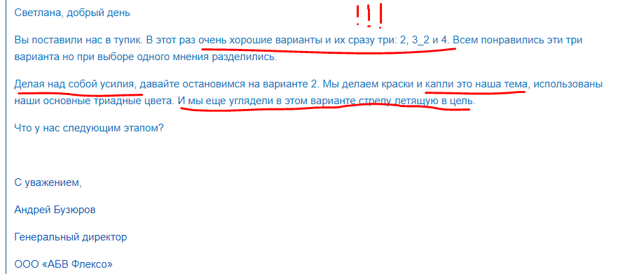 Что ж мы очень рады, что от недоверия и скепсиса к нам, мы получили столь позитивное, заряжающее на творчество письмо.