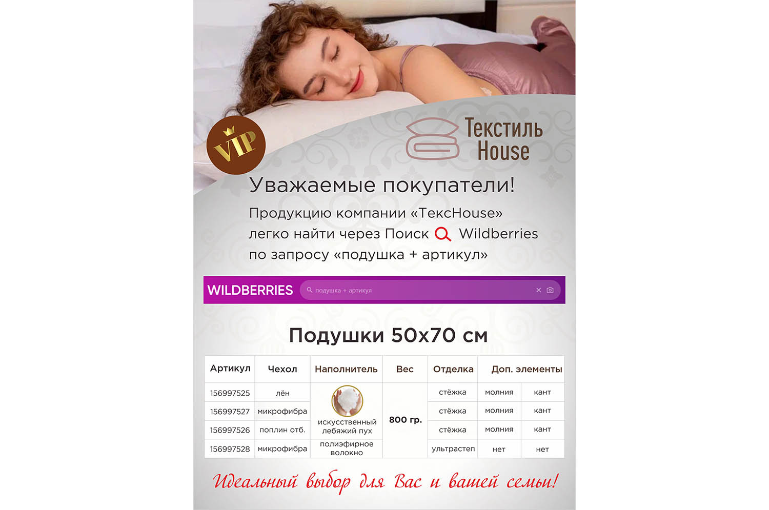 Дизайн карточки-Подушка для Текстиль House