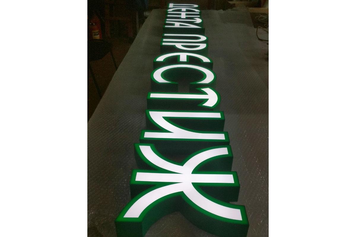 Буквы выполнены из молочного акрилового оргстекла, имеют светодиодную контр-ажурную подсветку.В рамках заказа нами выполнено согласование вывески с Администрацией города и монтажные работы.
