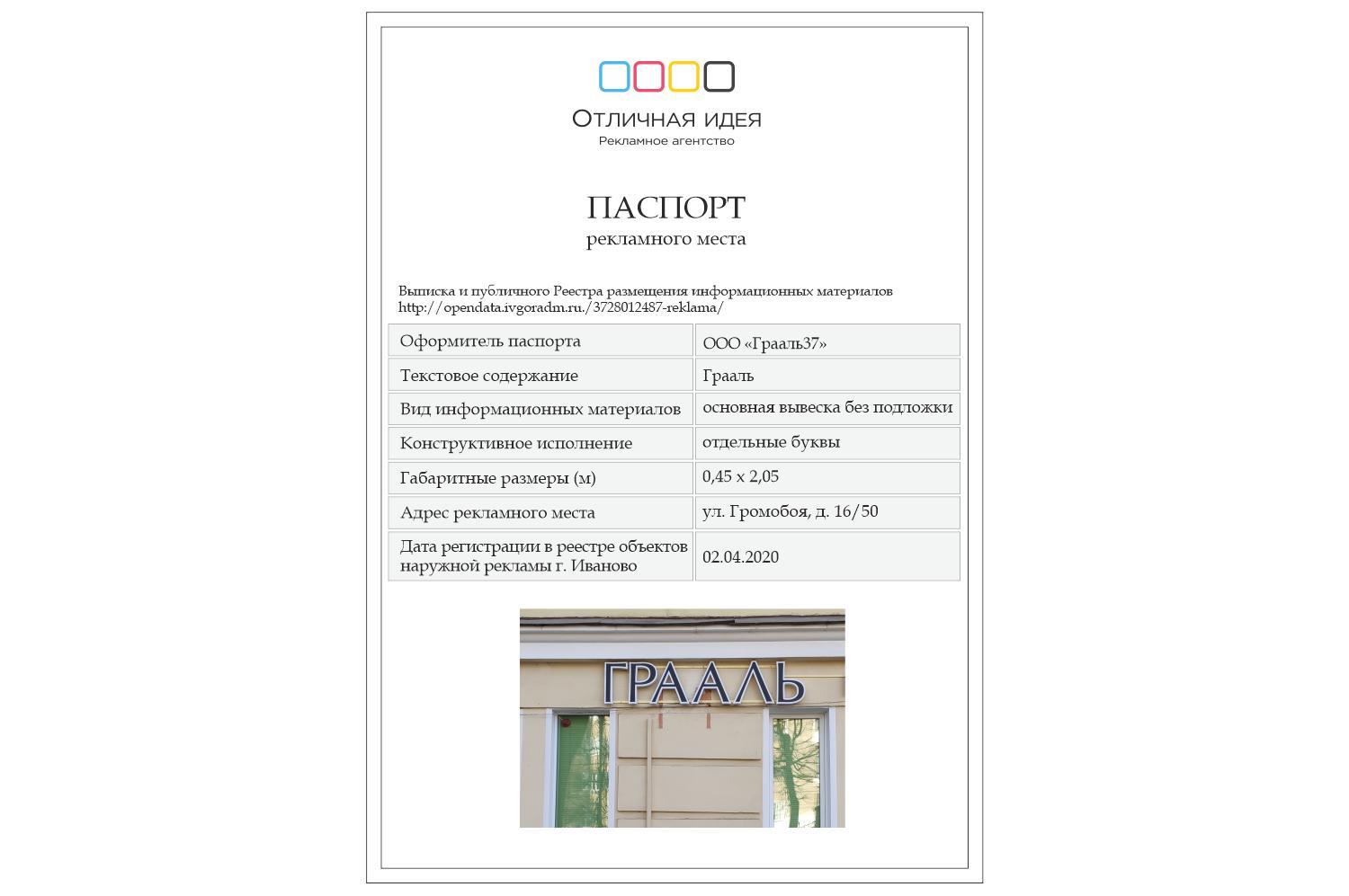 Тип рекламного носителя: основные вывески без подложки, информационная табличкаАдрес расположения вывески: г. Иваново, ул. Громобоя, д. 16/50