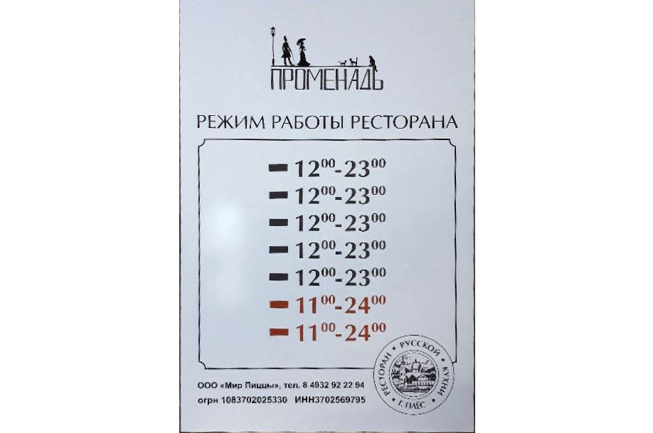 Эта вещь, с которой начинается Ваш бизнес. Встречая клиента прямо при входе, вывеска с режимом работы уже расскажет ему о том, когда к Вам лучше зайти или как с Вами связаться.