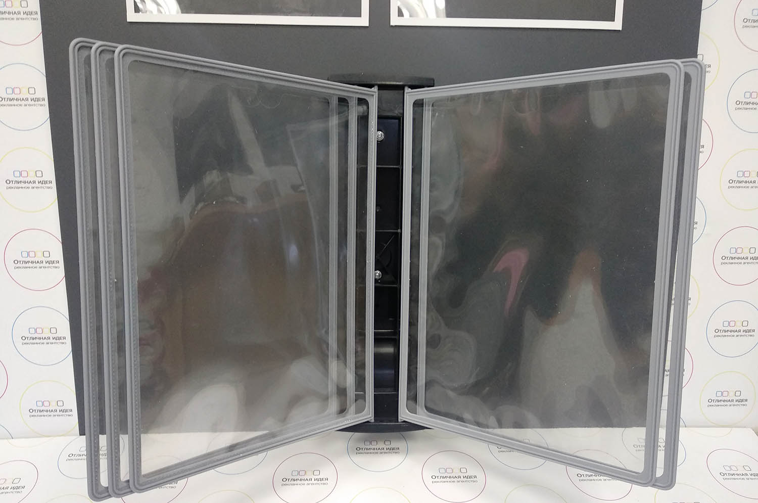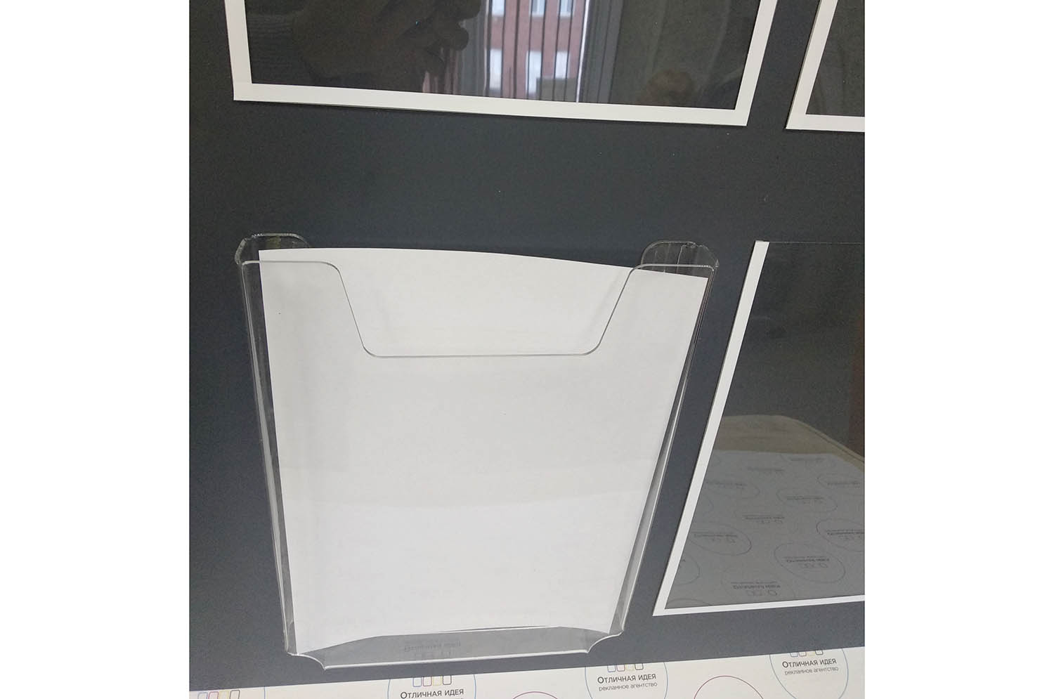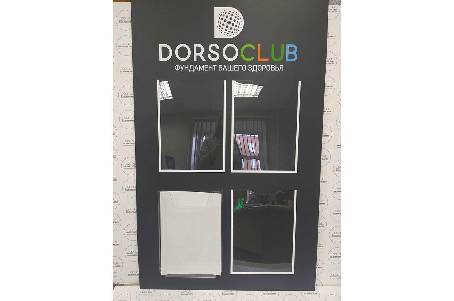 Стенд размером 70Х100, ПВХ 5 мм, логотип выполнен с помощью аппликации, имеются карманы А4 формата для размещения информации и для удобства замены её в будущем. Так же на одном из стендов имеется демонстрационная перекидная система А4 формата.|  |
