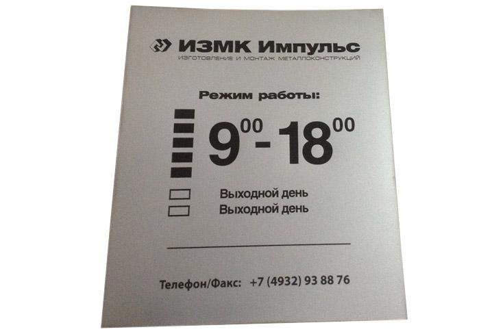 Табличка с режимом работы на заказ