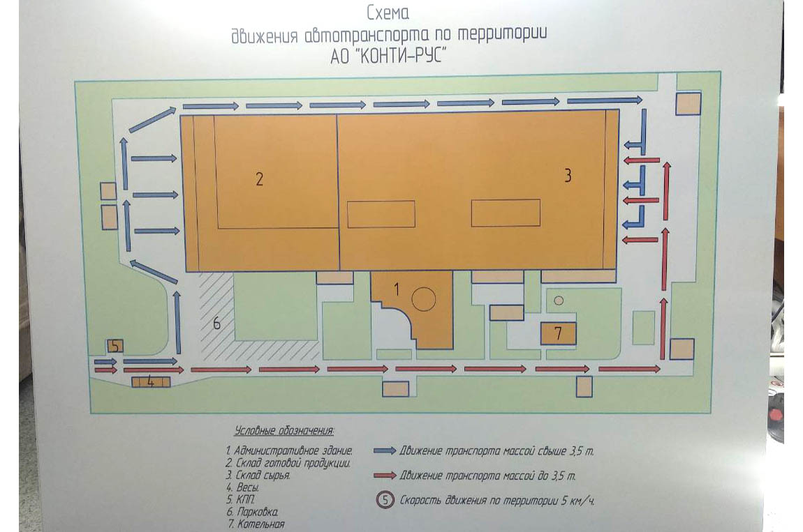 План-схема движения автотранспорта по территории предприятия — это необходимый элемент информирования водителей, в котором указываются направления движения автотранспорта. Данная схема позволяет ориентироваться и оптимизирует движение транспорта.