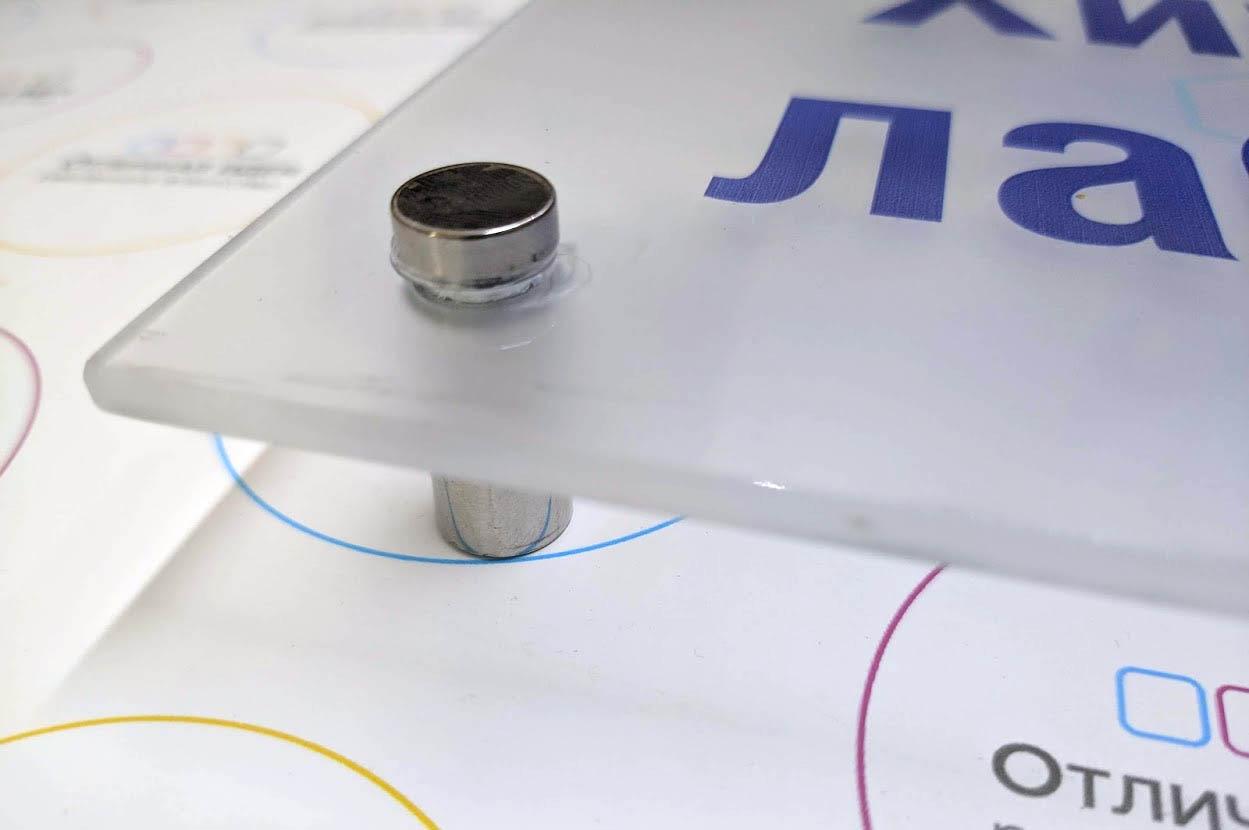 Данная табличка изготовлена из прозрачного оргстекла и закреплена на металлические дистанционные держатели.