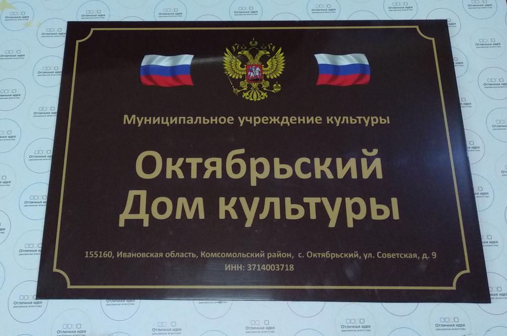 Фасадные информационные таблички не содержат рекламной или иной, продвигающей какой либо продукт или услугу, информации. Такие таблички указывают на организацию или предприятие. К фасадным табличкам относятся указатели улицы и номера домов.