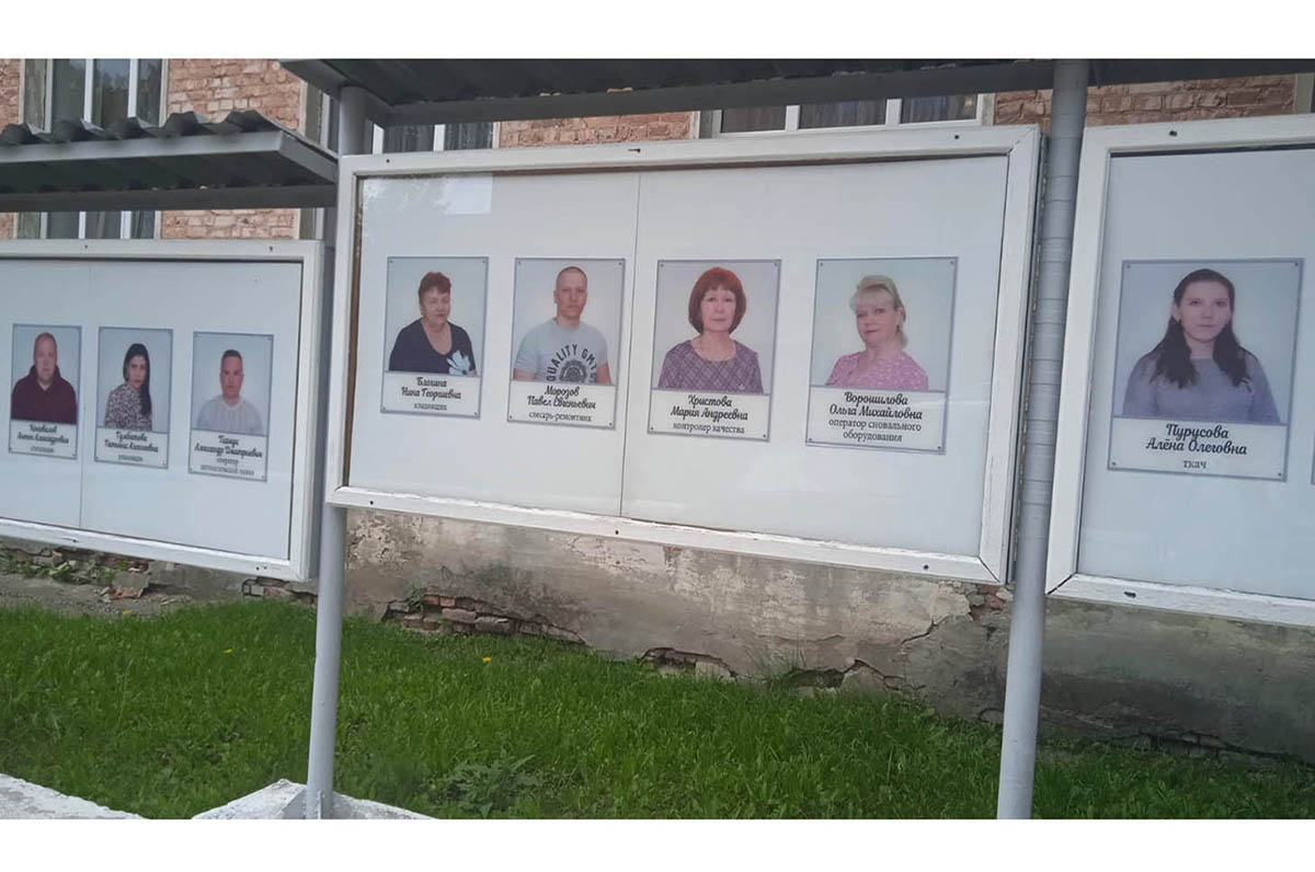Стенд на стойках, на нём фото лучших работников за стеклом.Выполним стенд по вашим эскизам или создадим по вашим пожеланиям.