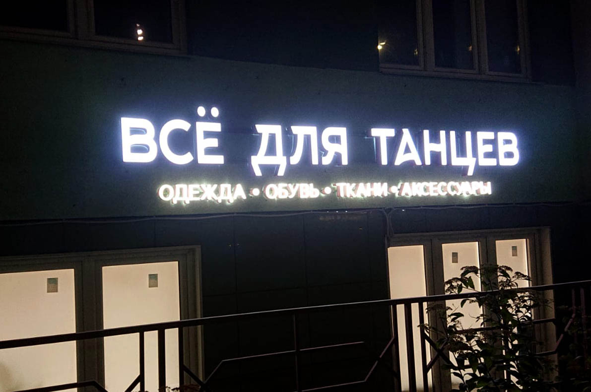 Вывеска выполнена в виде световых букв на металлокаркасе. Боковая стенка — не световая, лицевая часть буквы — матовое акриловой стекло + световая плёнка Oracal 8500