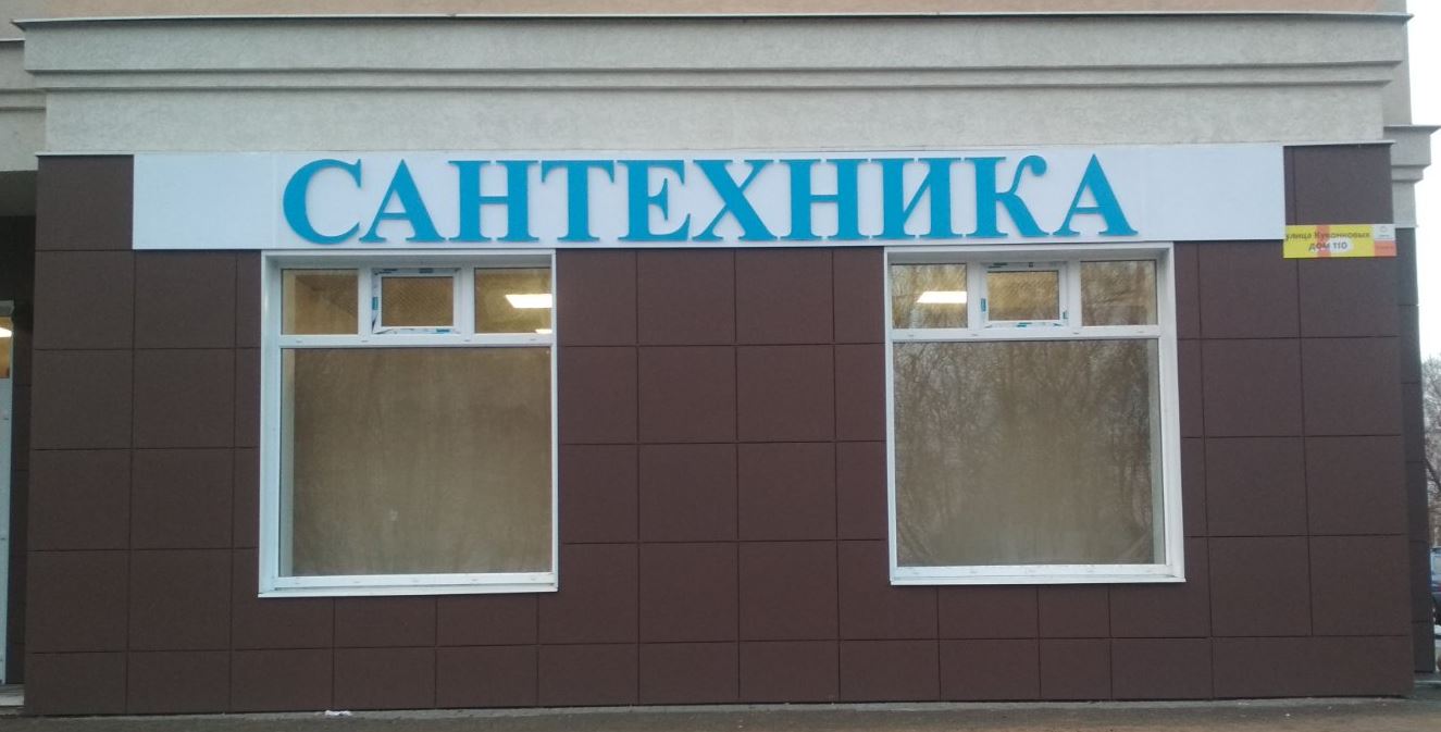 Вывеска с буквами на дистанционных держателях "САНТЕХНИКА"