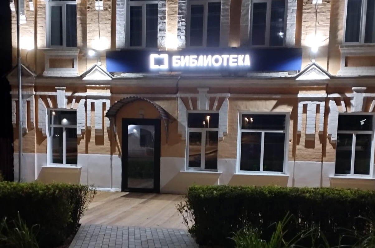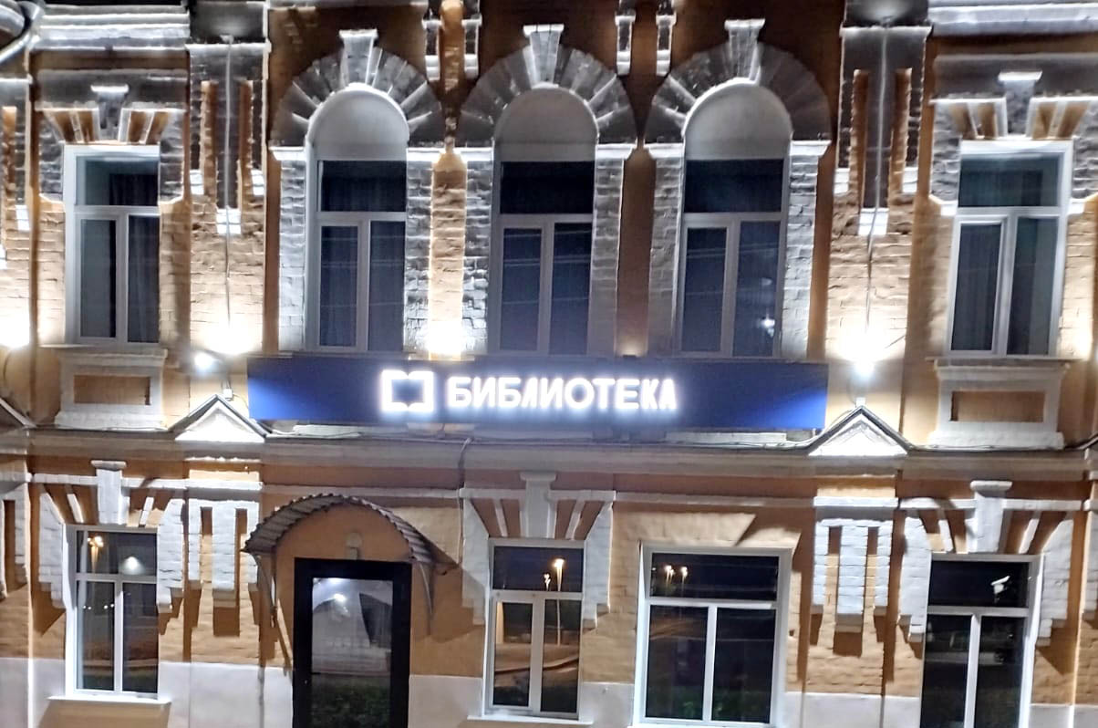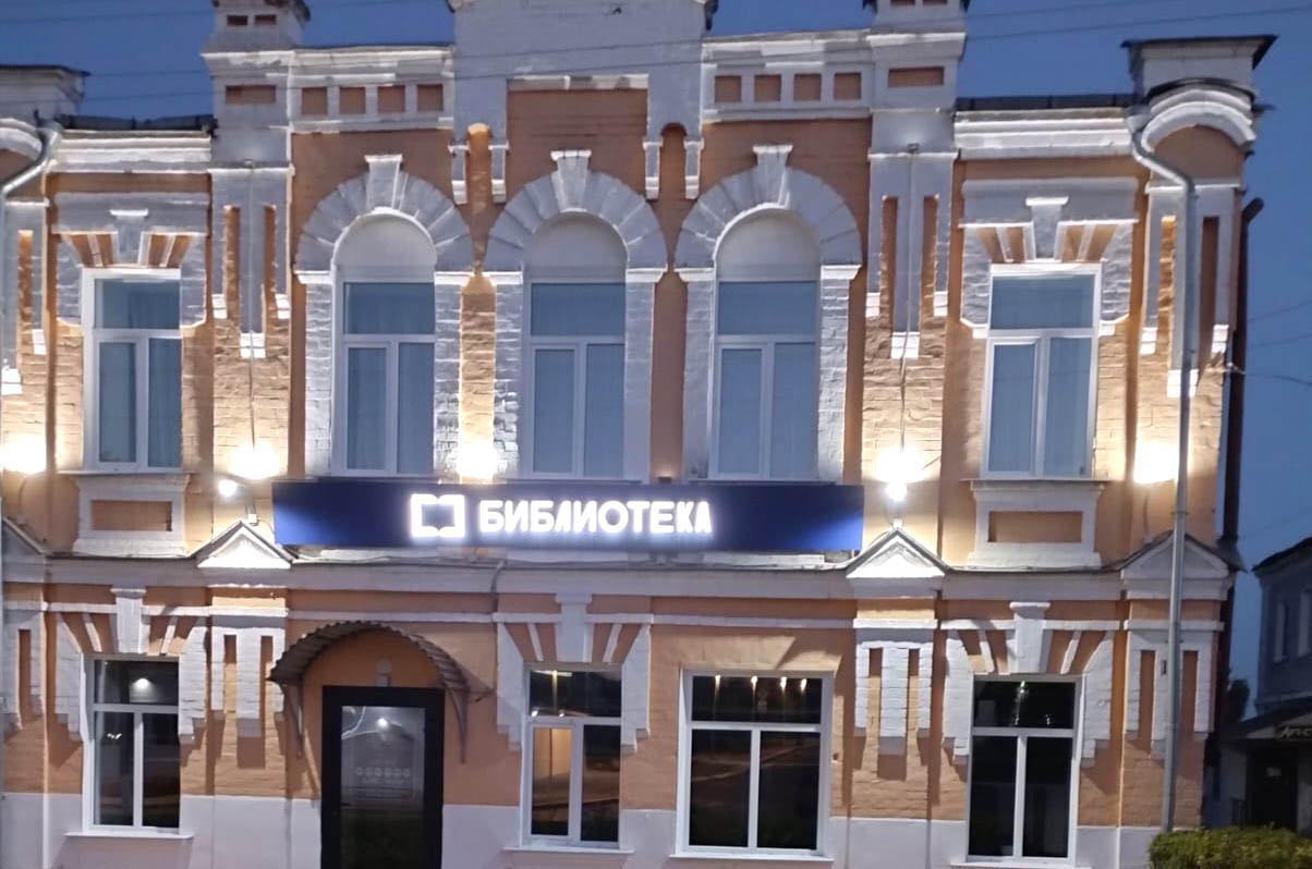 Вывеска с подсветкой "Библиотека"