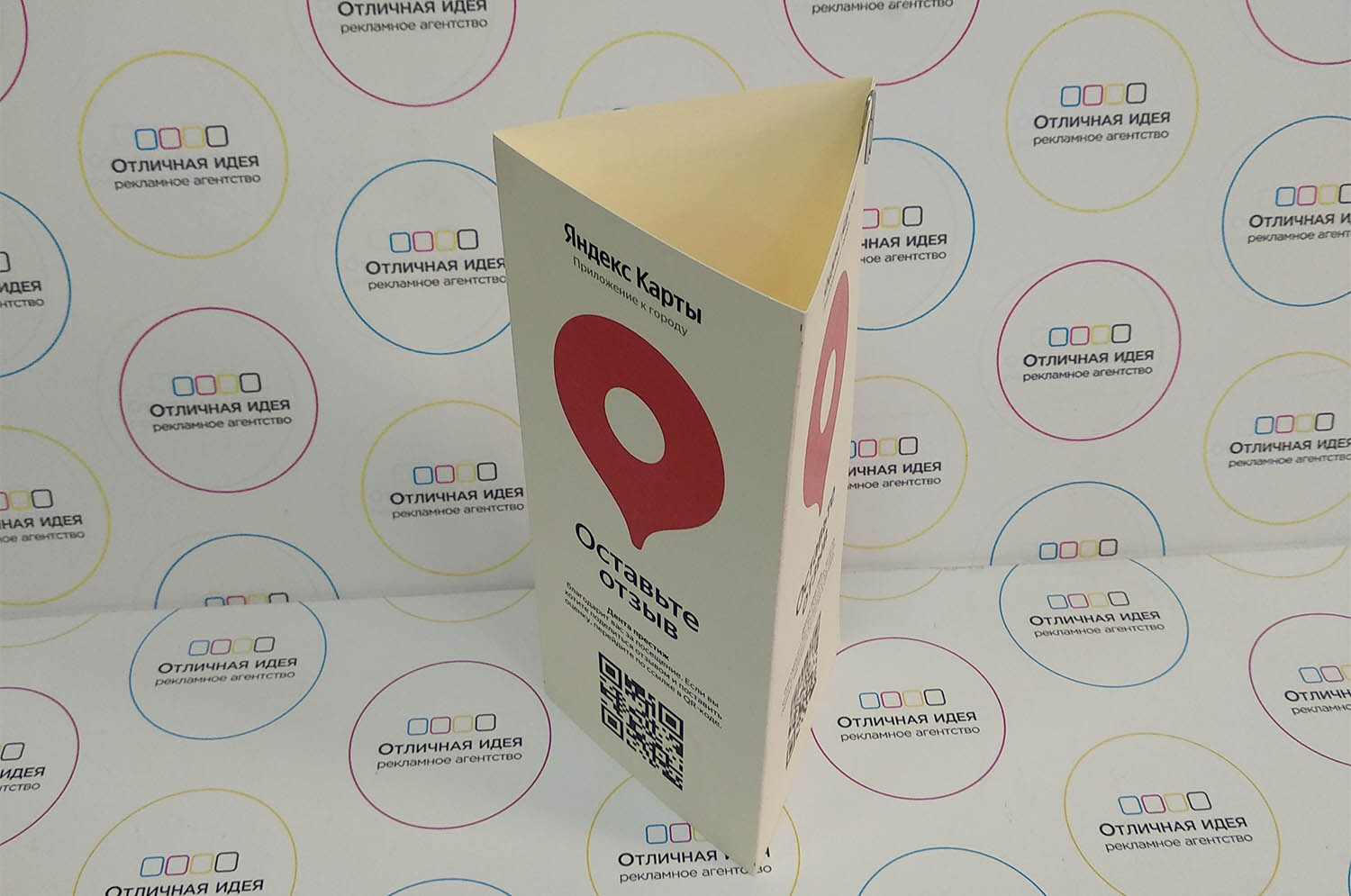 Буклет с куар-кодом для Яндекс. Отпечатан на плотном картоне, выполнен в фирменных цветах Яндекса.|