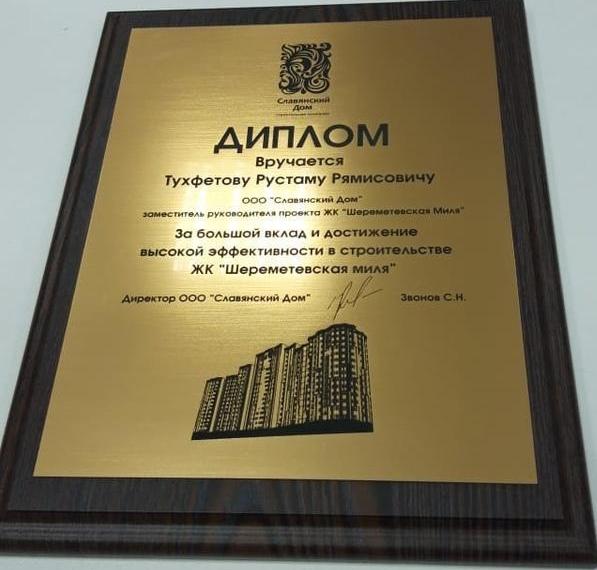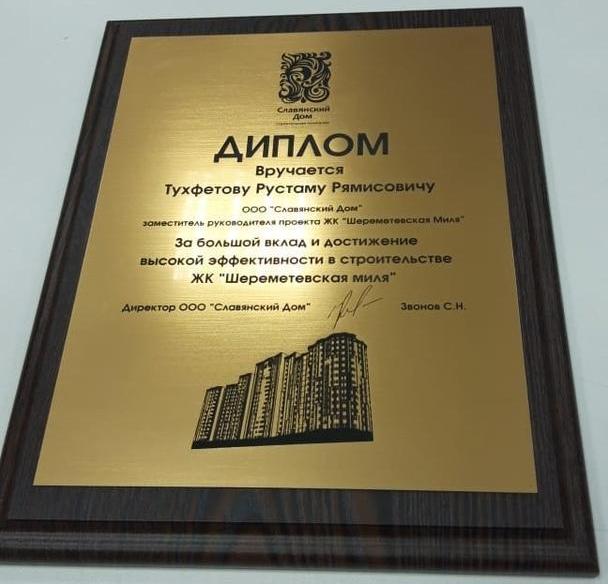 Данный диплом плакетка сделан для работника, который сделал большой вклад в работу.Руководство решило таким образом, отметить заслуги, достижения лучшего сотрудника.