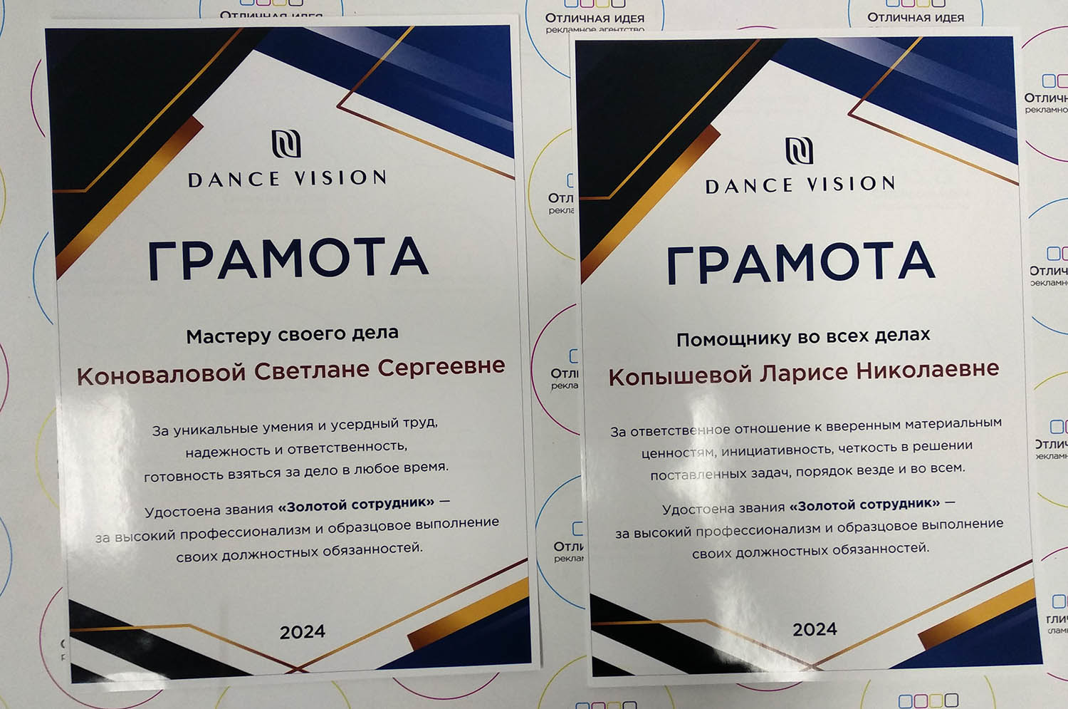 Грамота сделана на глянцевой фотобумаге, размер А5 формата.Дизайн макета можем разработать сами, а