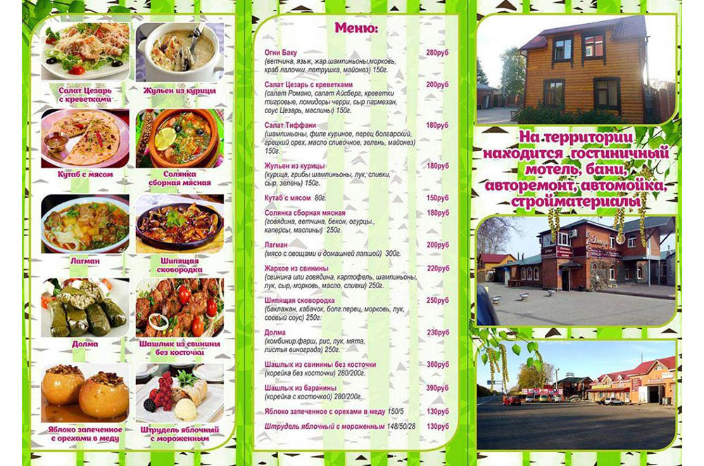 Дизайн буклета-меню Берёзка