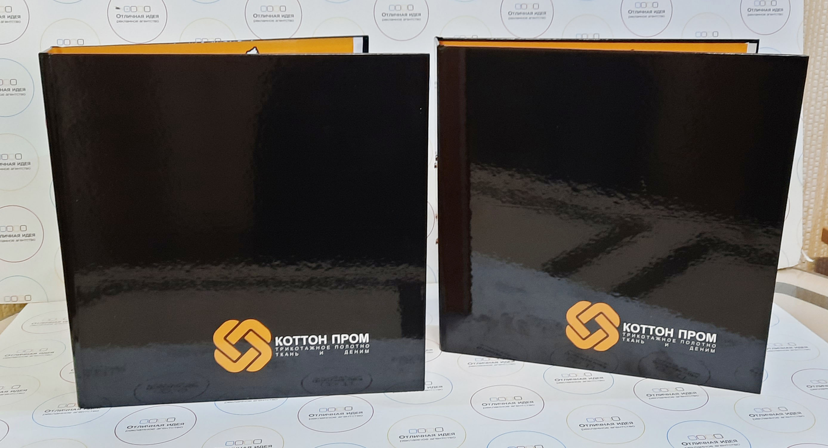 В "Отличной идеи" возможно заказать фирменную папку-презентер с логотипом компании.