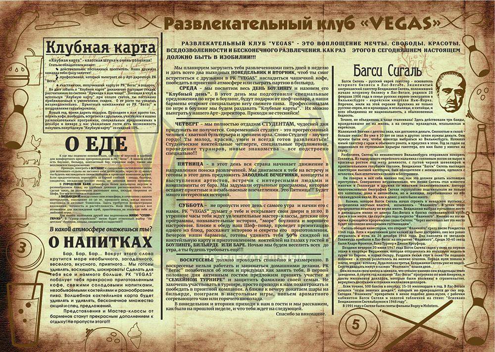 Плейсмет-газета для развлекательного клуба "Вегас"