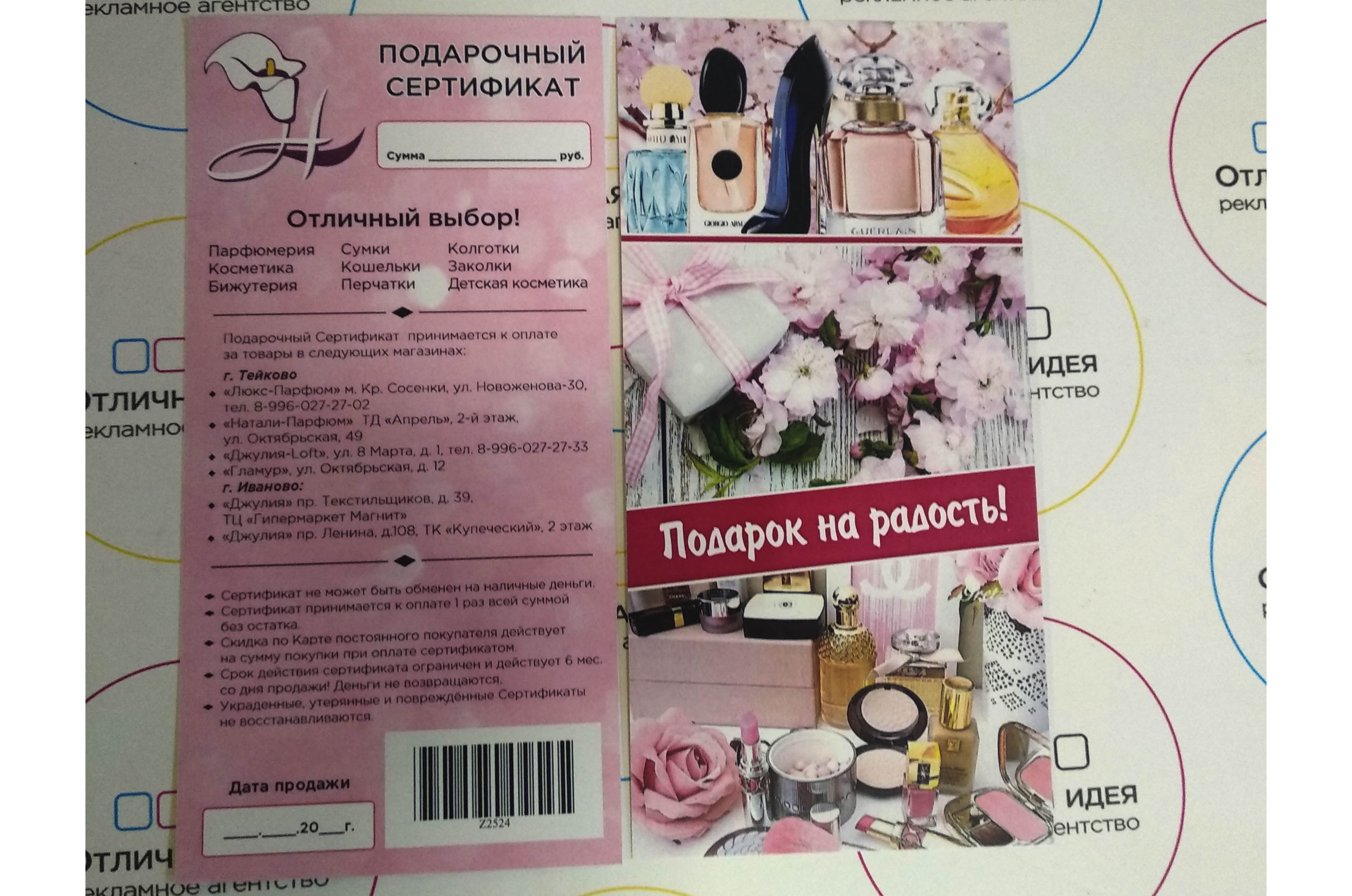 Если вы затрудняетесь с выбором подарка, купите подарочный сертификат. Эта приятная вещь порадует каждого и поможет осуществить любые мечты. Данный сертификат, для любителей шопинга, просто замечательный презент.