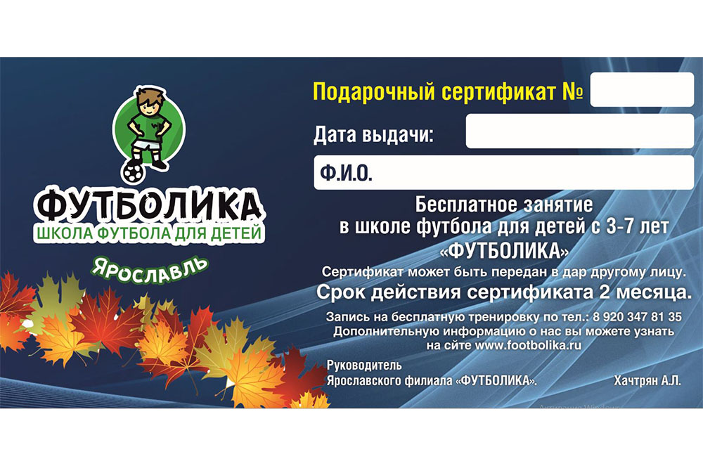 Подарочный сертификат- прекрасное решение для подарка на день рождение ребенку.Такой сертификат даёт возможность попробовать себя в спортивном направление, не оплачивая занятия, поскольку ребенку такой вид спорта может не понравиться.