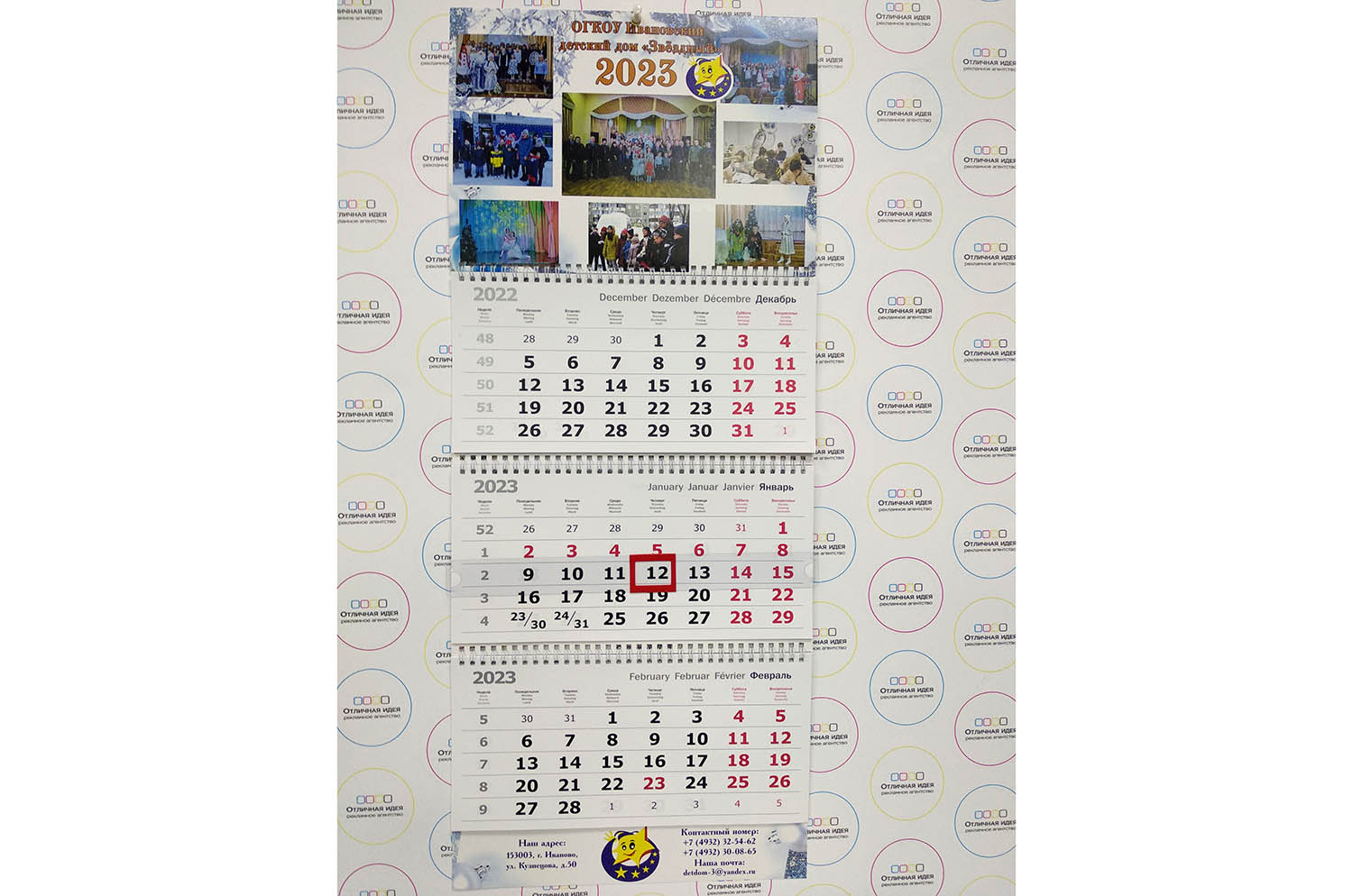 Такой календарь удобен в использовании, поскольку видно сразу три месяца.Соответственно планировать можно, на два месяца вперёд и все это, будет видно наглядно.
