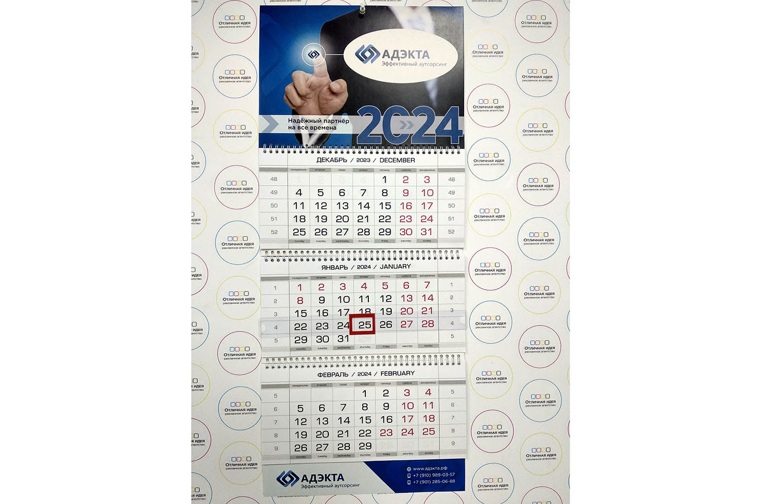 Настенный календарь на пружинах, оснащен люверсом и тремя пружинами, а также бегунком, который сразу показывает день недели.|