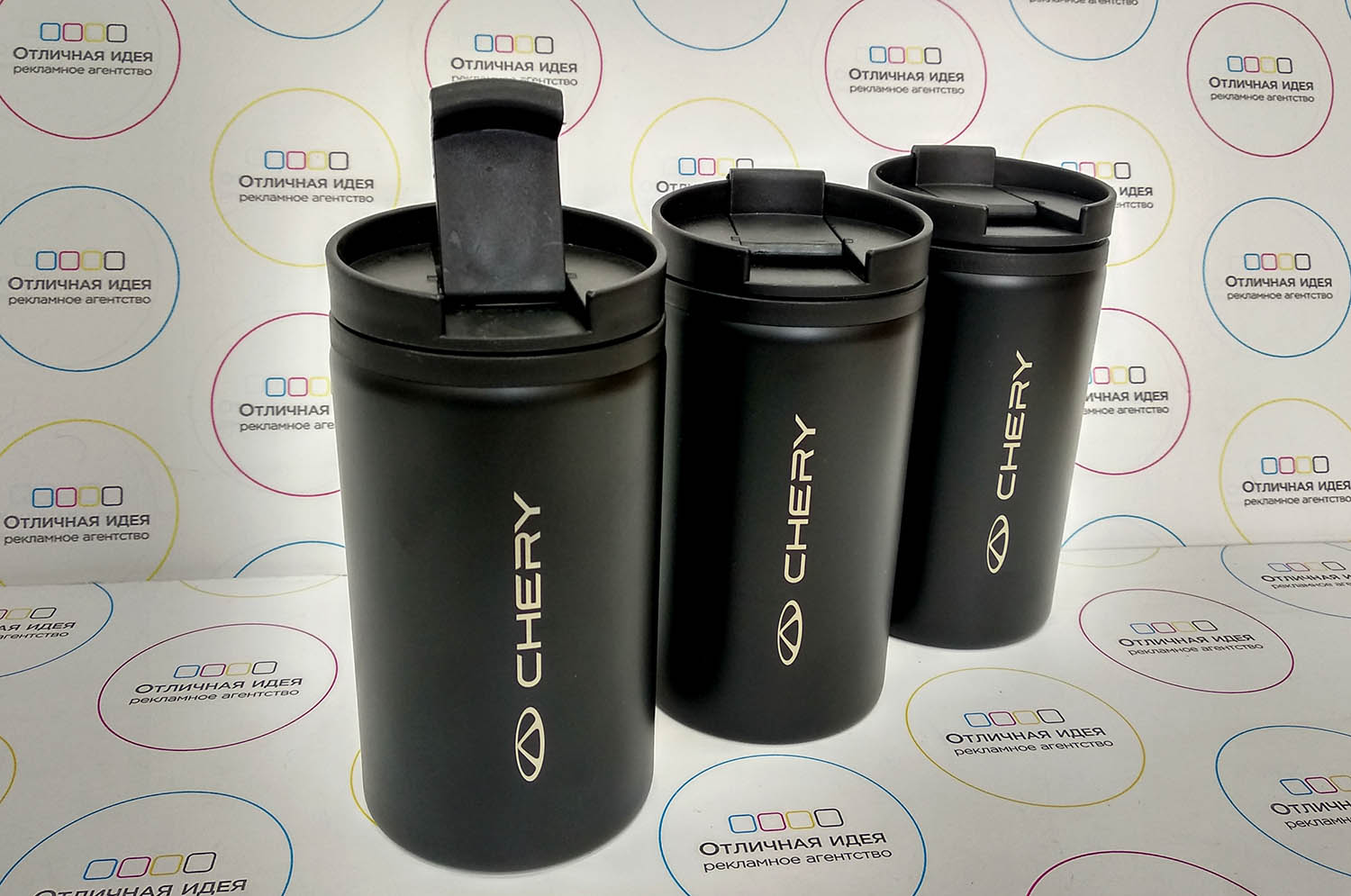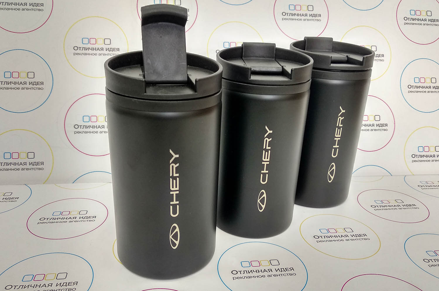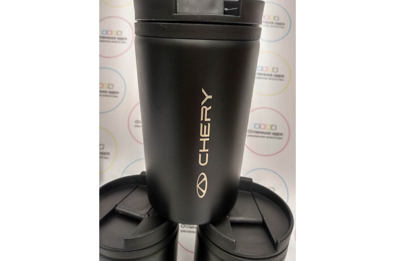 Логотип выполнен с помощью лазерной гравировки. Объём кружки 300 мл. На крышке сделан удобный клапан.|