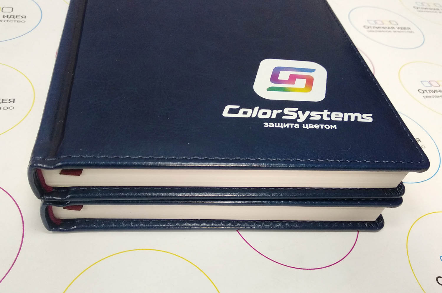 Ежедневник А5 формата, недатированный, имеет ляссе бардового цвета. Логотип выполнен с помощью УФ-печати.|  |