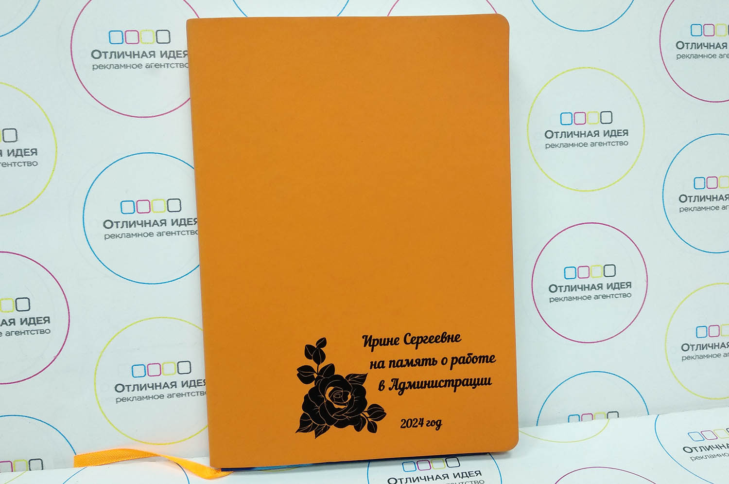 Ежедневник не датированный А5 формата, именная надпись выполнена с помощью УФ-печатью.|