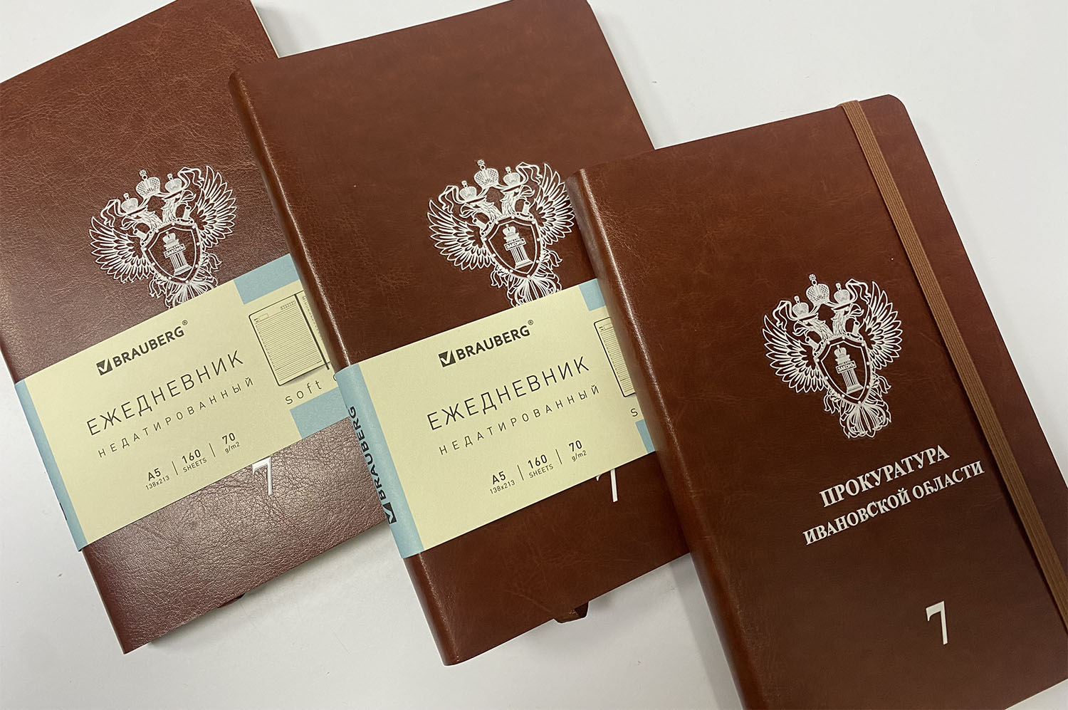 Белый цвет печати прекрасно смотрится на ежедневниках различных цветов.
