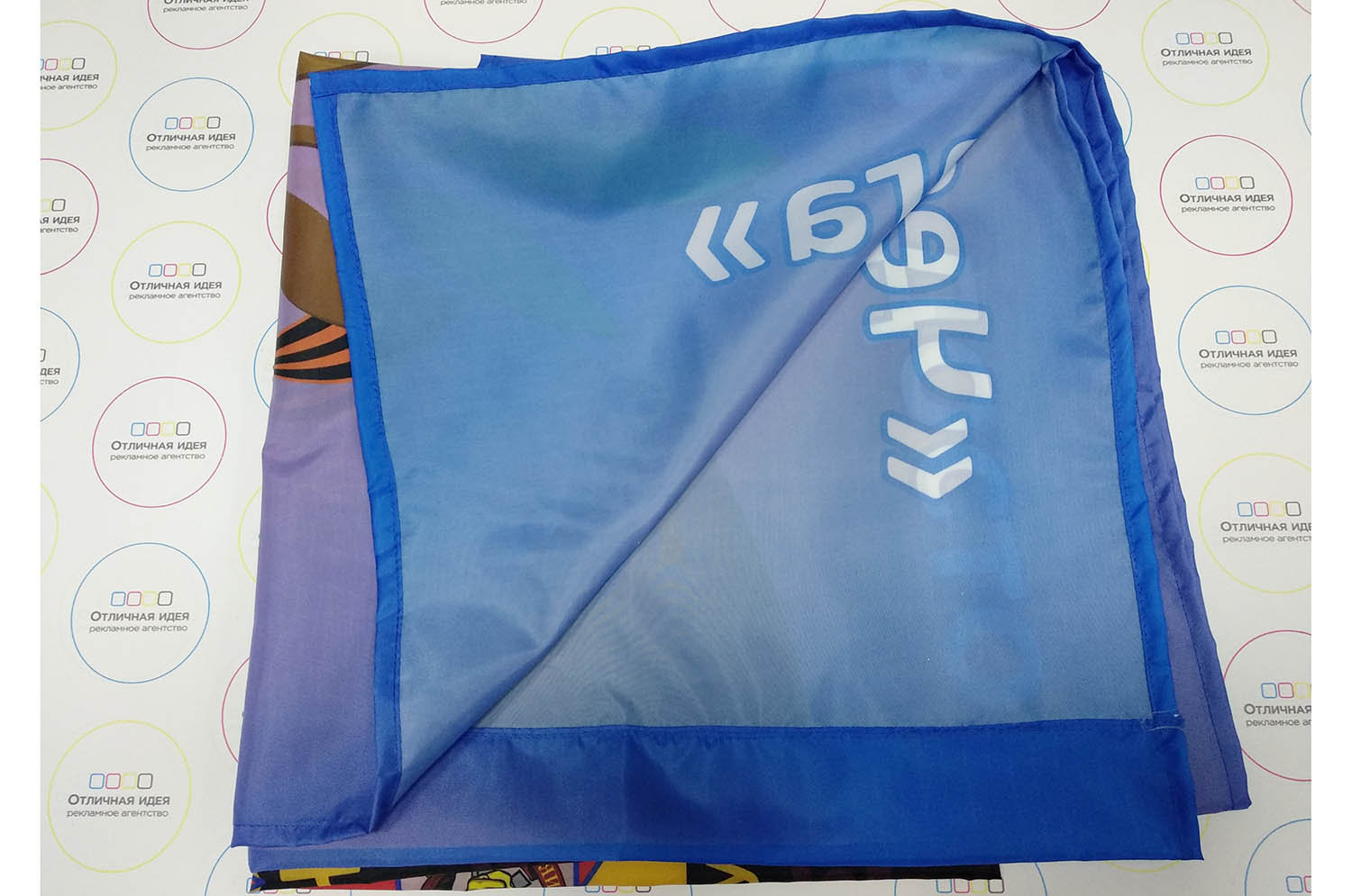 Как выглядит печать на полиэфирном шёлке. Печать на шёлке-таффете односторонняя (сквозной прокрас с пробивом на 1 сторону: на обратной стороне рисунок лицевой зеркально отражается с потерей цветности 30% ).
