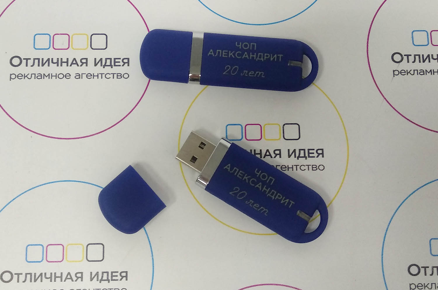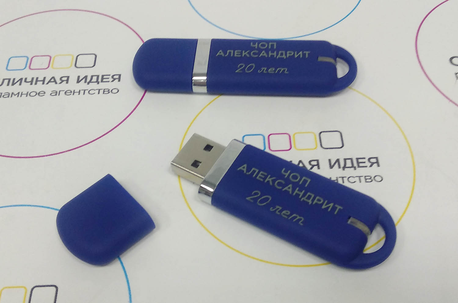 Флешка выполнена с покрытием софт-тач, печать выполнена с термоподъёмом.Термоподъём (термоподнятие) – технология, которую используют в полиграфии для создания объема отдельных надписей или логотипов. Это методика позволяет добиться оригинального внешнего вида изделия и выделить его посредством тактильного восприятия.