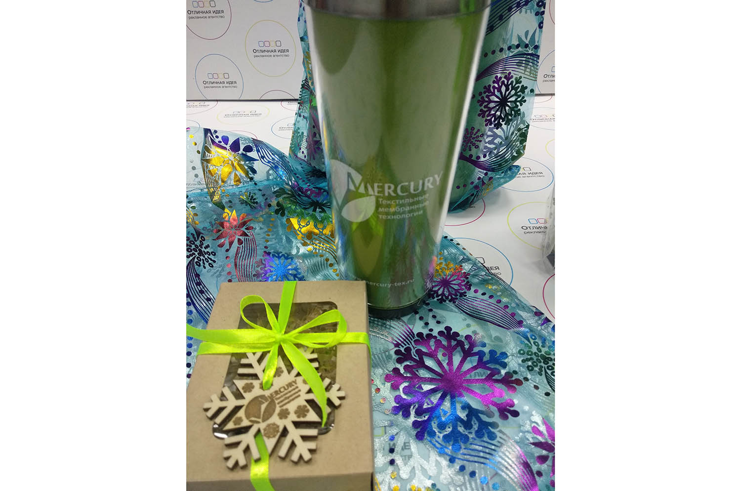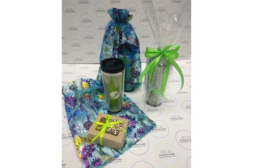 Прекрасный подарок для сотрудников, коллег на Новый год, 23 февраля, 8 марта.Термокружка с логотипом компании плюс шоколадки по 5 грамм в подарочной упаковке.
