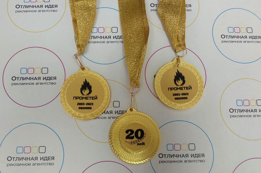 Медали сделанные под золото двух-сторонние, на каждой стороне самоклеящаяся бумага, с информацией, которую вы хотите разместить.В данном случаи говорится о том что фирме 20 лет, юбилей на котором руководство для своих сотрудников решило преподнести, памятные сувениры.