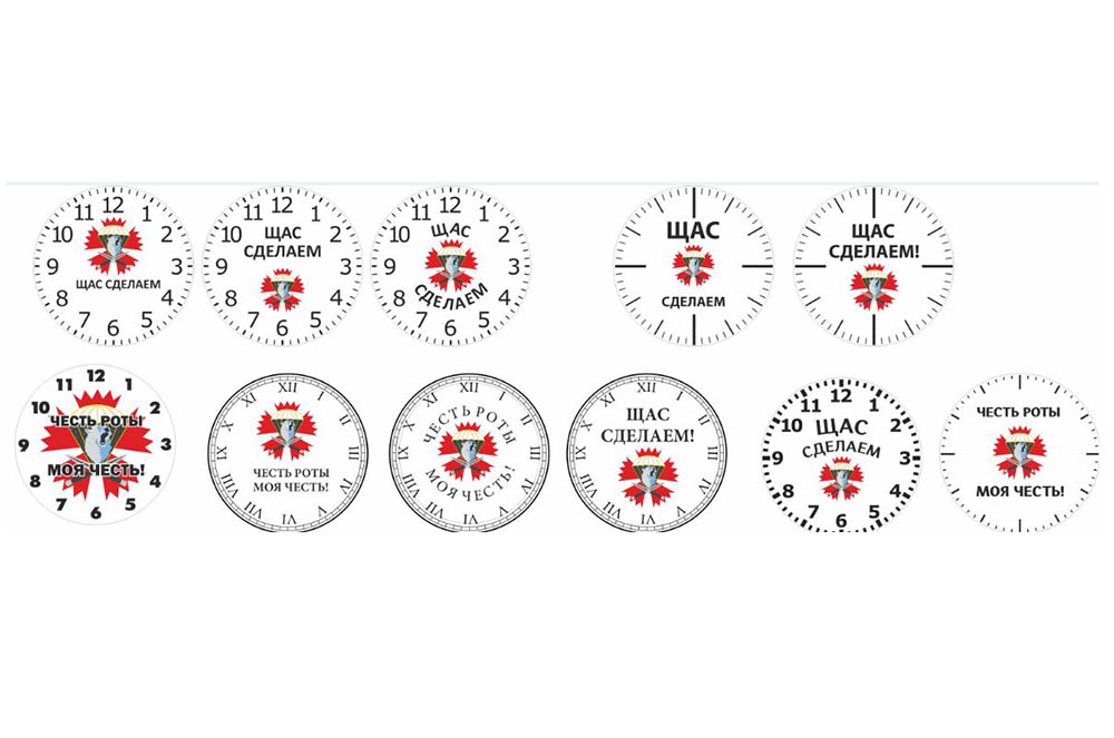 Справа вы видите много вариантов дизайна настенных часов, которые мы предоставили заказчику на согласование.