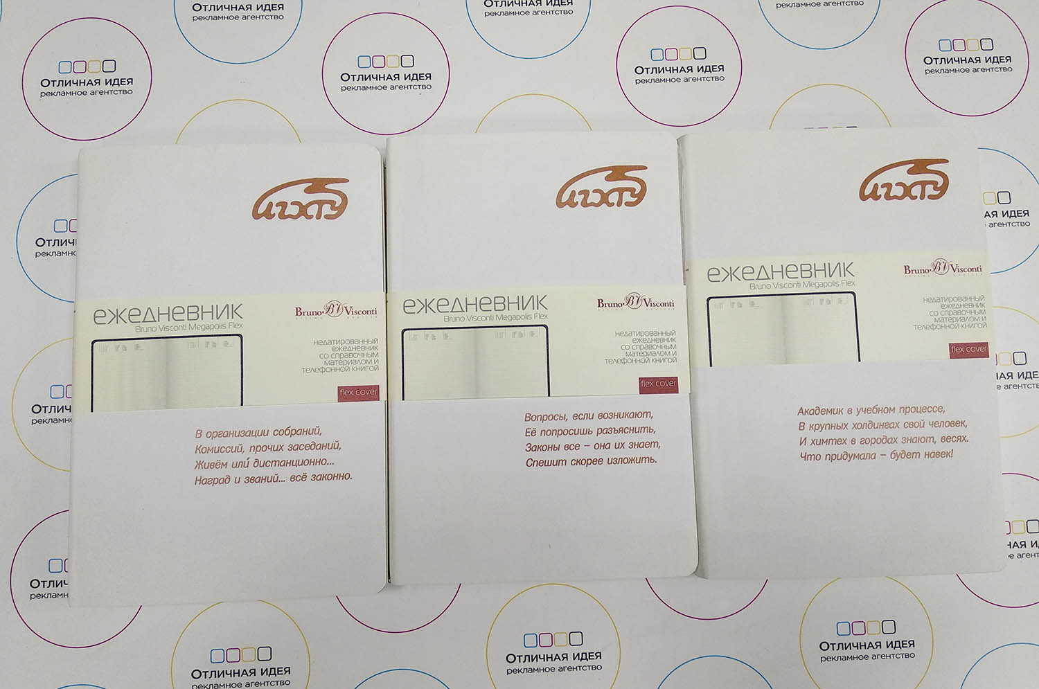 На каждом ежедневнике напечатаны стихи сочинённые мужчинами для своих коллег женщин. Такой подарок становиться эксклюзивным.Мы поможем вам в создании запоминающихся подарков для коллег, руководителей, партнёров.