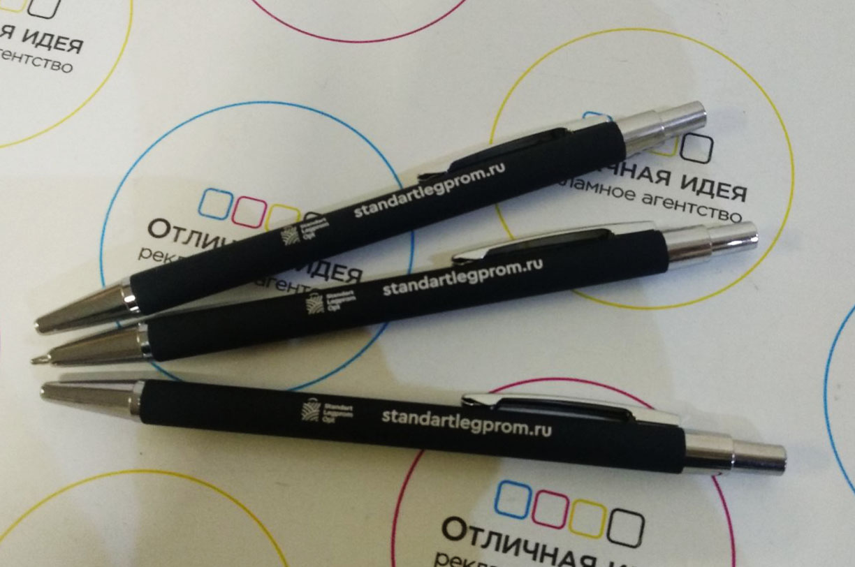 Поверхность пластиковой ручки с логотипом может быть глянцевой или матовой. Невероятно приятными и мягкими на ощупь являются ручки с надписью Soft-touch на корпусе, что в переводе означает «нежное прикосновение». Такое покрытие получают при напылении на поверхность изделия полиуретана. Существует разновидность ручек с металлическим матовым корпусом. Смотрятся они стильно и презентабельно.