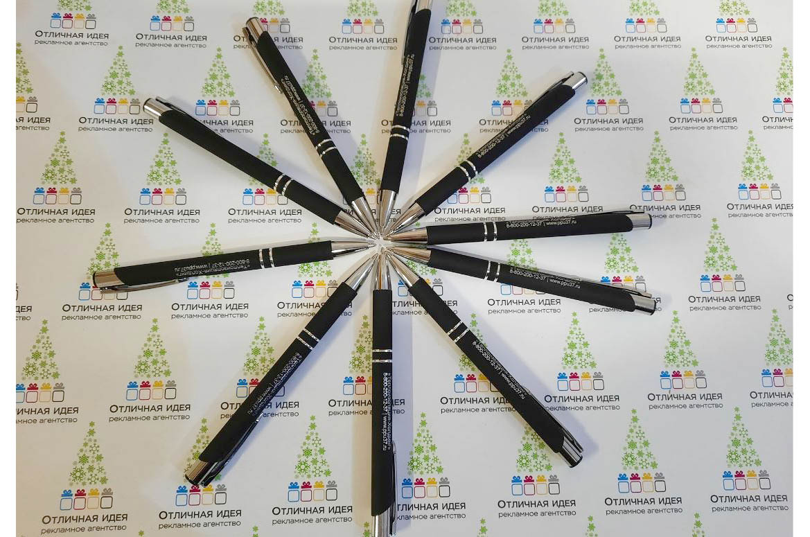 Поверхность пластиковой ручки с логотипом может быть глянцевой или матовой. Невероятно приятными и мягкими на ощупь являются ручки с надписью Soft-touch на корпусе, что в переводе означает «нежное прикосновение». Такое покрытие получают при напылении на поверхность изделия полиуретана. Существует разновидность ручек с металлическим матовым корпусом. Смотрятся они стильно и презентабельно.