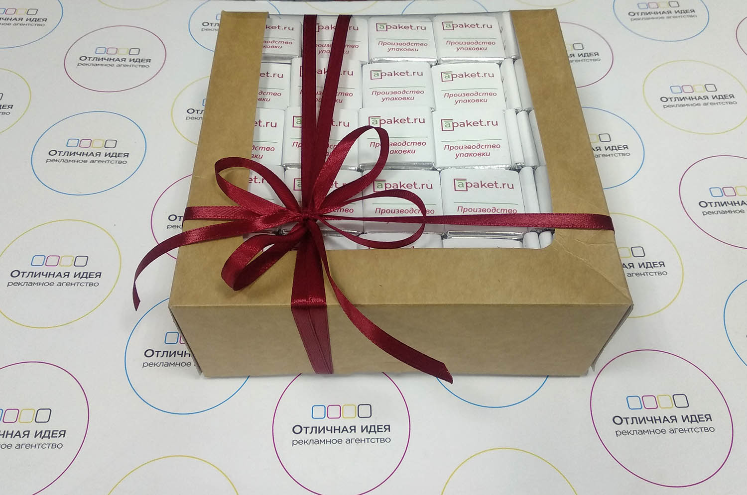 Для этих целей идеально подойдет оригинальный шоколад с логотипом.