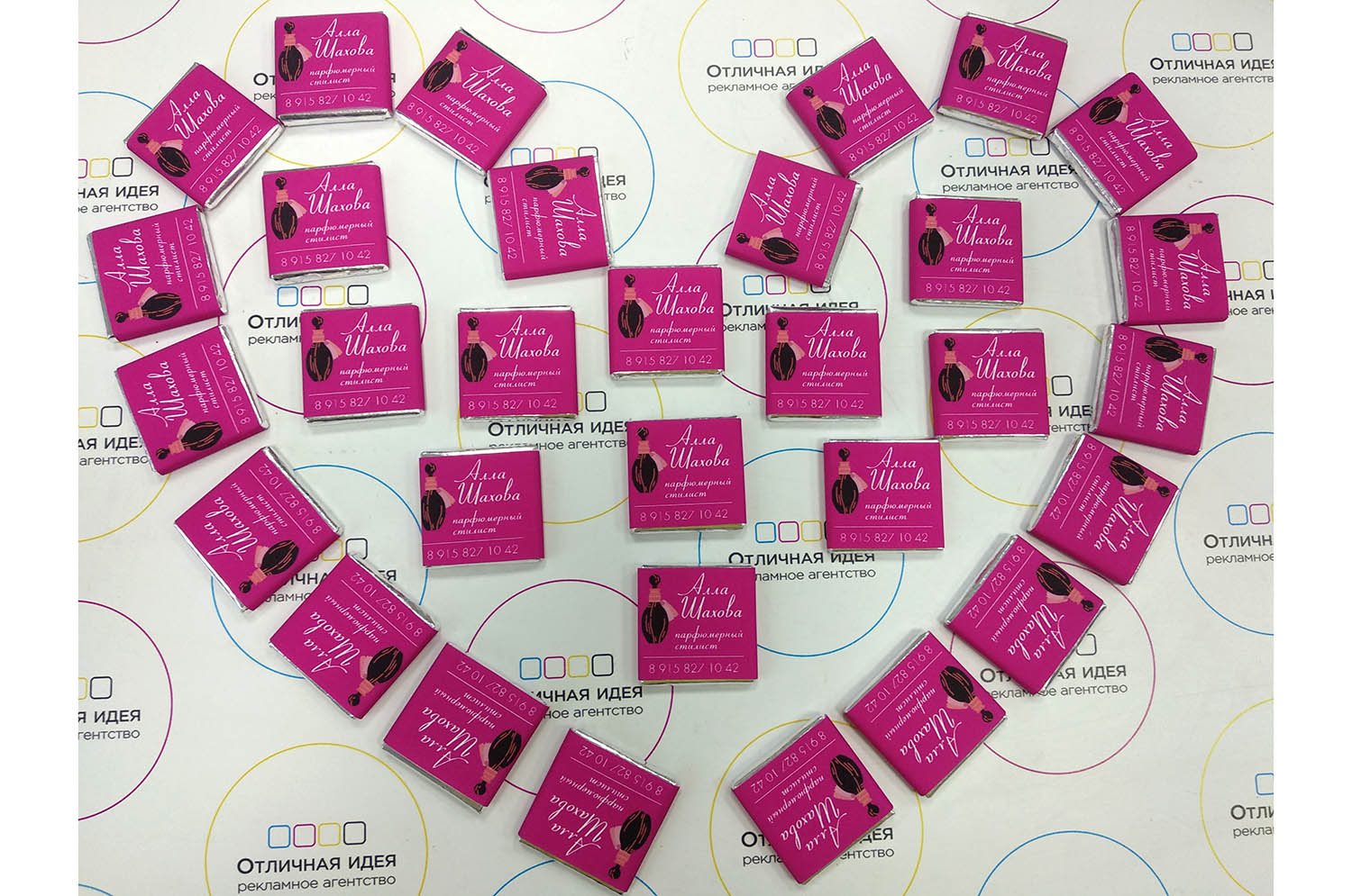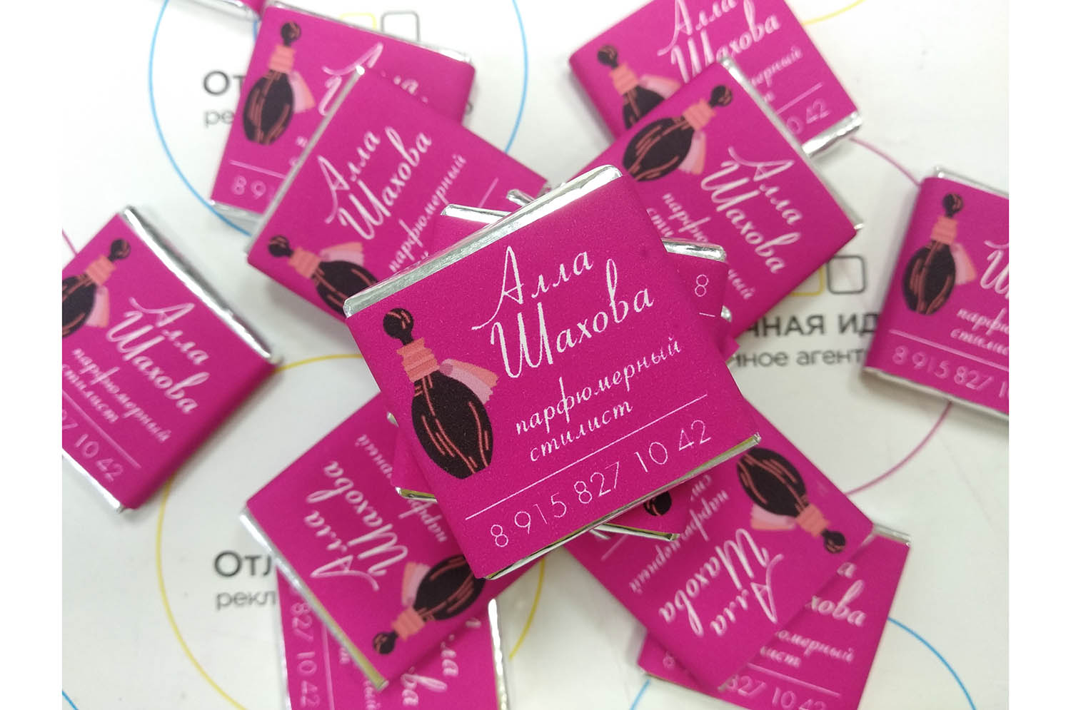 Сладкий презент никого не оставить равнодушным. Логотип размещённый на обёртке такой сладости, создаст благоприятное впечатление о Вашей компании, товаре, услуге.Рекламная кампания, при использовании брендированного шоколада, создаст положительный имидж компании.