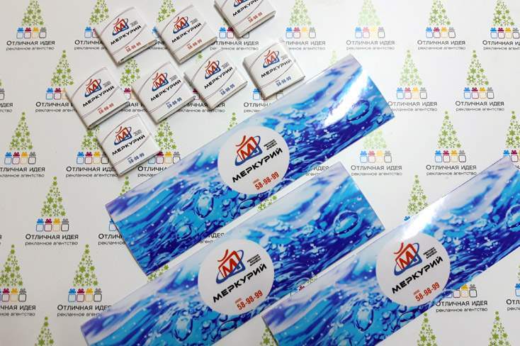 Фирменные шоколадки в обертке с логотипом "Меркурий"