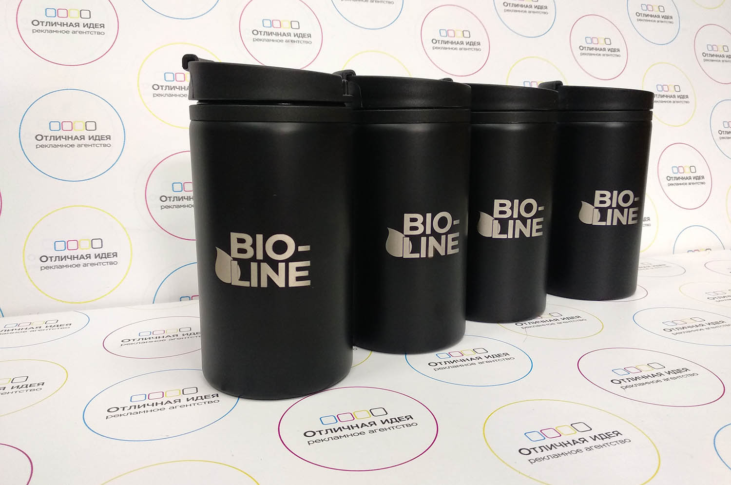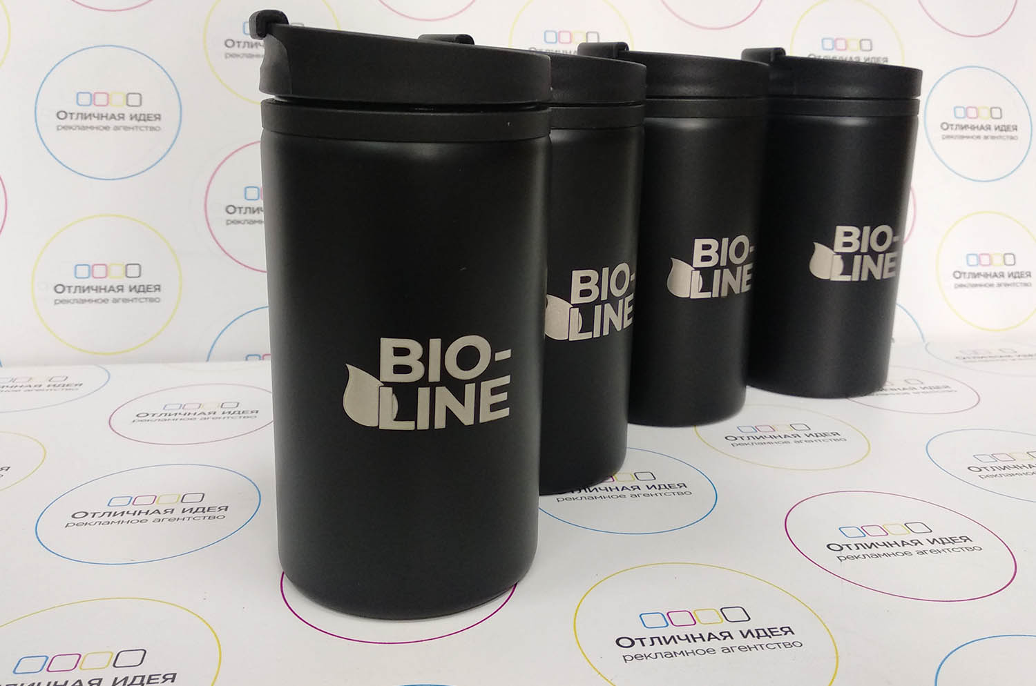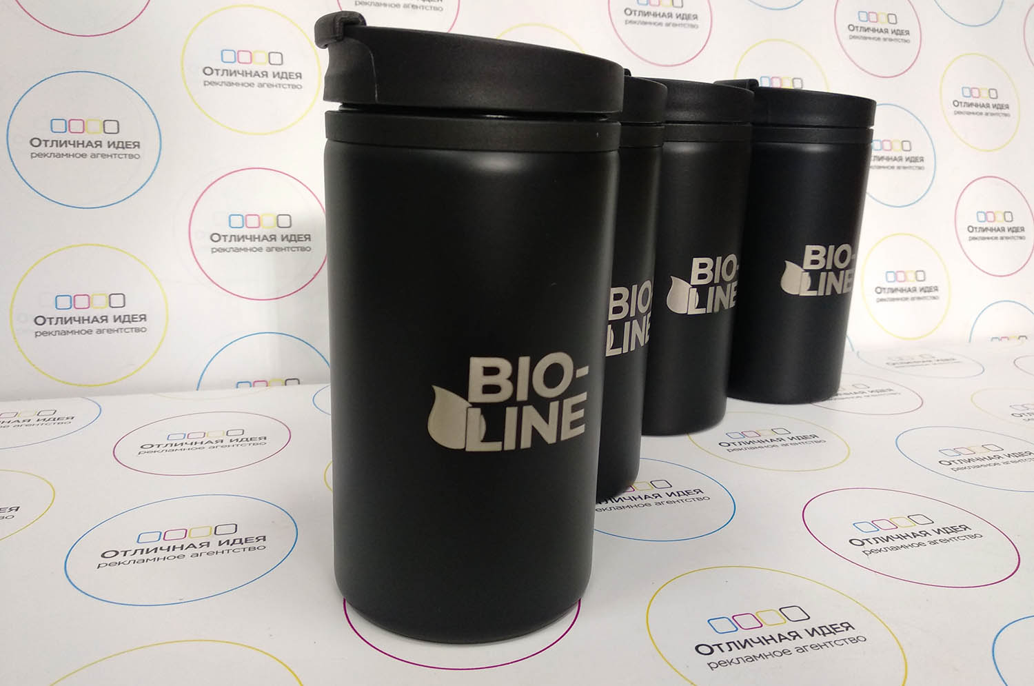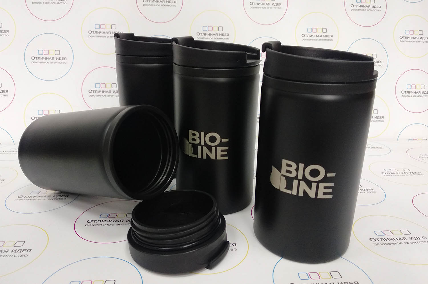Кружки объёмом 300 мл..Логотип нанесен с помощью лазерной гравировки.